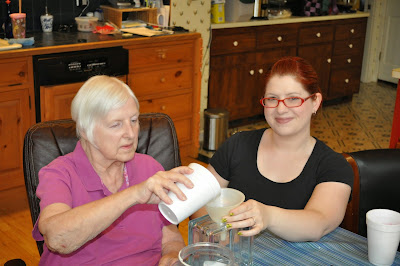 | Katie and her Mom working on an art project made to be accessible for the stage of Lewy Body Dementia Carol had at the time, in 2011. Copyright K. Norris. |